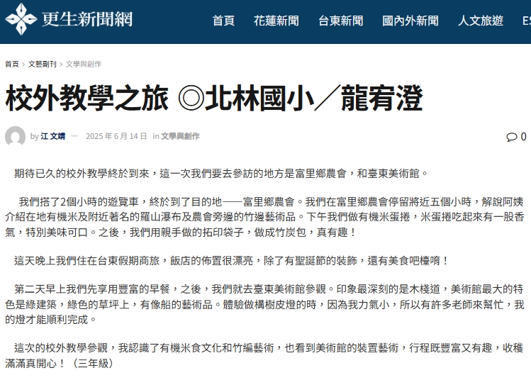 恭喜三年級學生龍宥澄投稿文章獲更生日報兒童天地版刊登