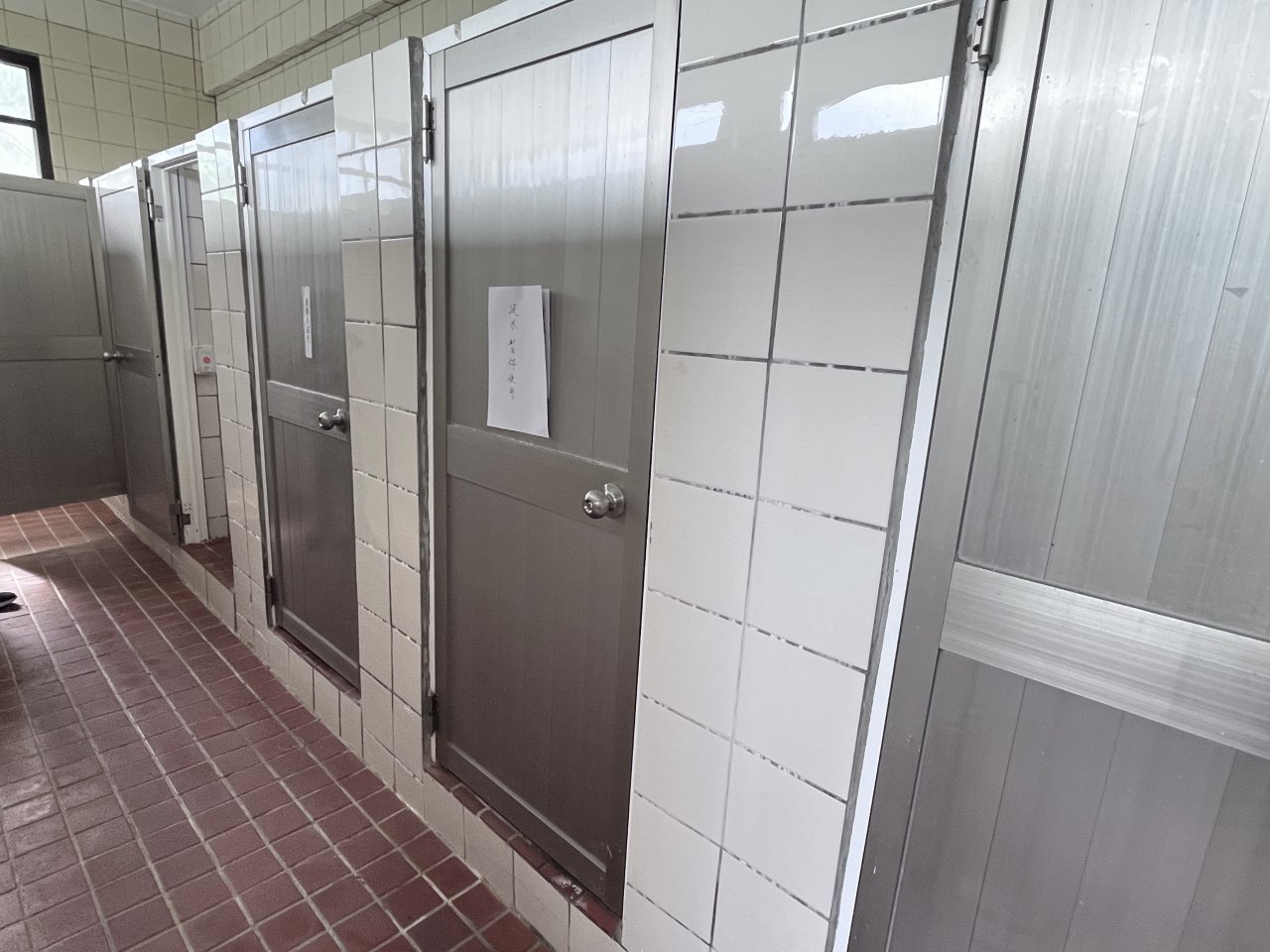 二樓女廁第2間,拉水沖水繩時,沒有出水,拉扯時也沒有阻力,可能是拉桿和止水閥脫鉤了。