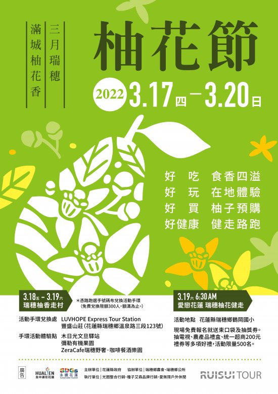 瑞穗鄉坐擁花東縱谷壯闊景觀與豐富人文資源,鶴岡文旦更是全台遠近馳名。文旦柚於3月上旬開花,花期約20天,本次活動結合在地柚園,期讓所有參加者漫步在億萬朵的柚花海中,感受與享受瑞穗的天然美景。