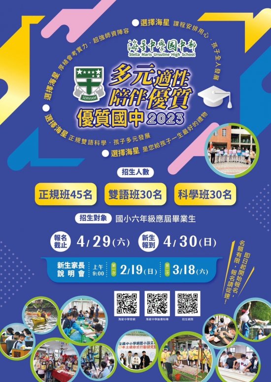 轉知花蓮縣私立海星高級中學國中部112年招生海報
