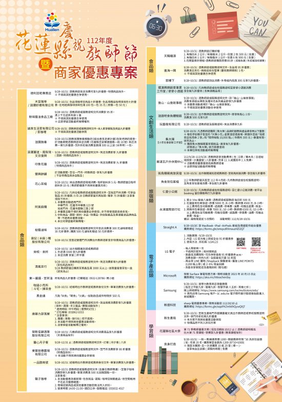 檢送花蓮縣慶祝112年教師節計畫-商家優惠專案海報電子檔 1份,請公告周知,請查照。