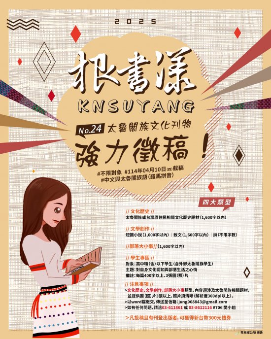 3、新詩(不限文字及圖(照)片數量,內容須與太魯閣族相關之題材)。
