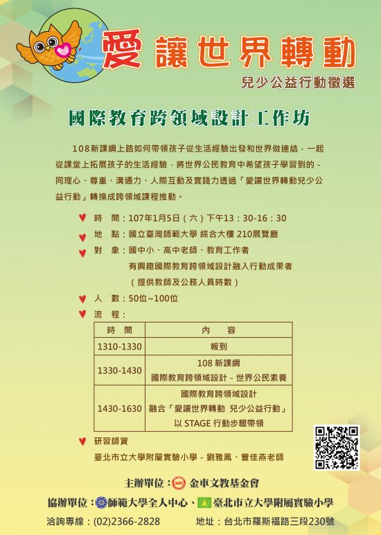 一、 | 「愛讓世界轉動 兒少公益行動」國際教育融入跨領域設計工作坊 |